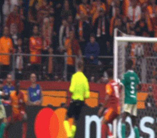 比賽開始后,主場(chǎng)作戰(zhàn)的加拉塔薩雷氣勢(shì)十足。來到第15分鐘,伊爾馬茲突入禁區(qū),被索博斯洛伊甩手打到臉部后順勢(shì)倒地,主裁判果斷指向點(diǎn)球點(diǎn),奧斯梅恩上前主罰命中,加拉塔薩雷1-0領(lǐng)先!