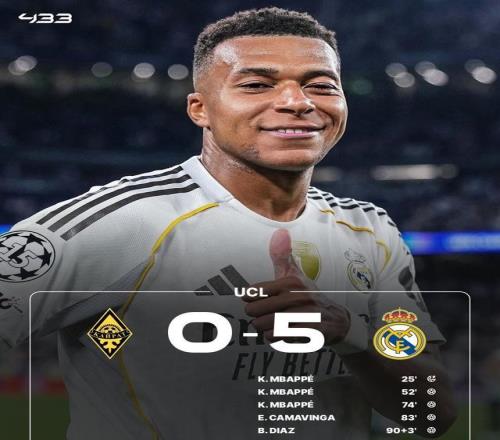 憑借姆巴佩的帽子戲法、卡馬文加和迪亞斯的進(jìn)球,皇馬客場(chǎng)輕松取得5-0大勝!