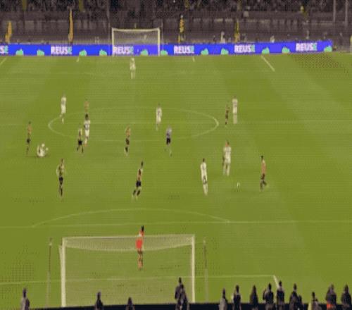 開場第23分鐘,皇馬通過一次非??焖俚母咝Х磽?,拿到了點(diǎn)球的機(jī)會(huì)。從中場的發(fā)牌到前場前鋒之間的銜接適配,僅僅用了兩、三腳的傳遞。雖然對手的解圍給到了大禮,不過、皇馬向前的壓制以及每個(gè)人的跑位,是很合適的。馬斯坦諾向前突的這一下,展現(xiàn)出了年輕人應(yīng)有的活力,姆巴佩主罰點(diǎn)球命中幫助皇馬率先先拿到了優(yōu)勢。這是阿隆索想要比賽情況。