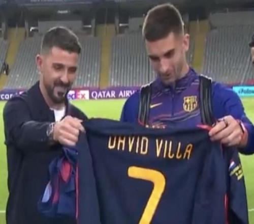 北京時間10月2日,在歐冠對陣巴黎圣日耳曼的激烈較量后,巴薩球員費蘭-托雷斯迎來了場外的一個特別瞬間,他收到了一個意義非凡的禮物,那就是西班牙傳奇射手比利亞親手送給他的西班牙2010年世界杯決賽球衣。