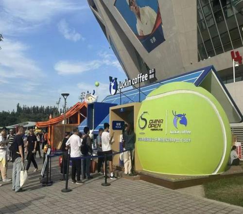 而走進(jìn)中國(guó)網(wǎng)球公開賽的西廣場(chǎng),最直觀的感受是不知道喝什么好。往左走是品品香的白茶攤位,往右是瑞幸的咖啡屋,不遠(yuǎn)處還有「補(bǔ)水啦」的特別展位。