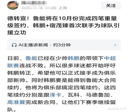 重磅消息!泰山隊即將進(jìn)行四筆大交易,韓鵬帶隊爭冠!