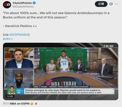 Shams透露,如果要離開雄鹿,字母哥唯一想去的球隊就是尼克斯。