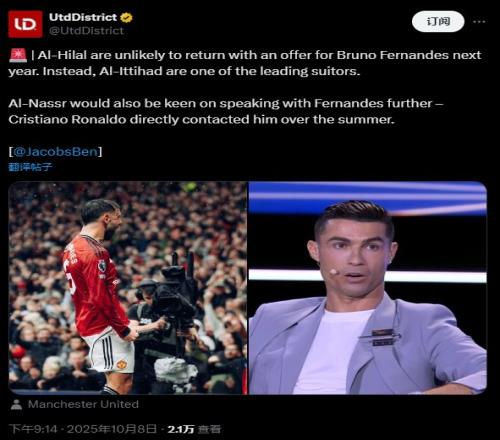 據(jù)talkSPORT電臺(tái)記者Ben Jacobs透露,盡管今年夏天遭到了B費(fèi)的拒絕,但利雅得勝利一直在關(guān)注著B(niǎo)費(fèi)的動(dòng)向。甚至C羅已經(jīng)直接與這位同胞通話,討論了在利雅得相聚的可能性。過(guò)去3個(gè)賽季,C羅一直在沙特踢球,他在今年夏天就與B費(fèi)關(guān)于轉(zhuǎn)會(huì)事宜有過(guò)交流。
