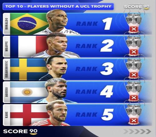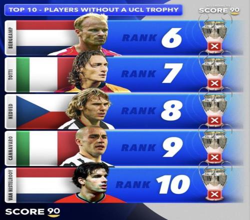 這是媒體Score 90評(píng)出的“歐冠無(wú)冠球星 TOP10”榜,羅納爾多、伊布、托蒂、內(nèi)德維德、凱恩、姆巴佩、范尼等大牌悉數(shù)在列,陣容耀眼,卻都缺少一座“大耳朵杯”。同樣是時(shí)代巨星,為何有人距離冠軍只差一步,有人則被球隊(duì)周期“錯(cuò)峰”?