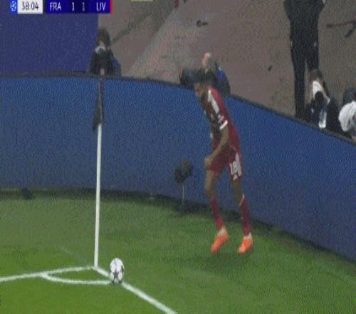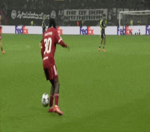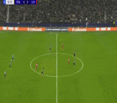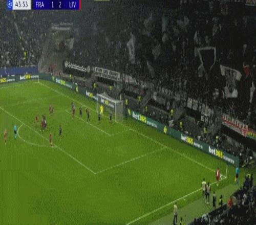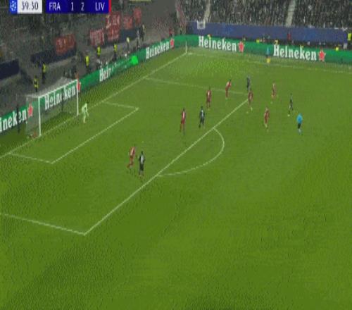 第26分鐘,維爾茨突破被斷,法蘭克福隨即快速反擊,格策轉(zhuǎn)移到右路,克里斯滕森小角度低射彈柱入網(wǎng),法蘭克福1-0利物浦。