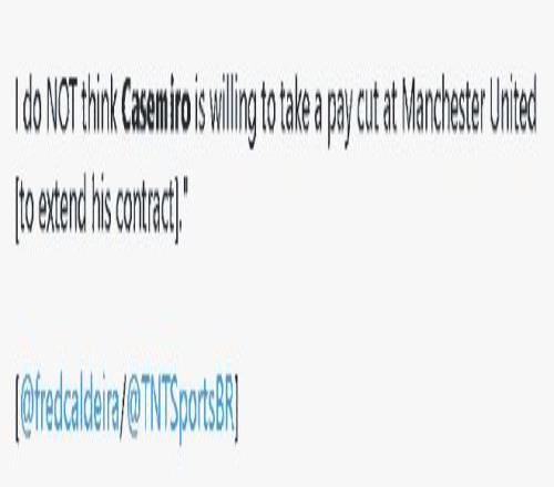 曼聯(lián)目前正在與馬奎爾就新合同進(jìn)行談判,不過尚未對(duì)卡塞米羅的合同狀況采取行動(dòng)?!窽NT Sport」的弗雷德·卡爾德拉稱,卡塞米羅不接受降薪續(xù)約曼聯(lián)的條件。