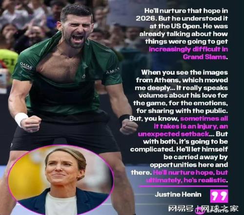 對此,前網(wǎng)球選手、七屆大滿貫冠軍得主海寧對德約科維奇的處境有著敏銳的觀察:“他會在2026賽季繼續(xù)保持這種希望,但他在今年美網(wǎng)已經(jīng)意識到這點,當(dāng)時他開始談?wù)撢A得大滿貫會越來越困難?!?/p>