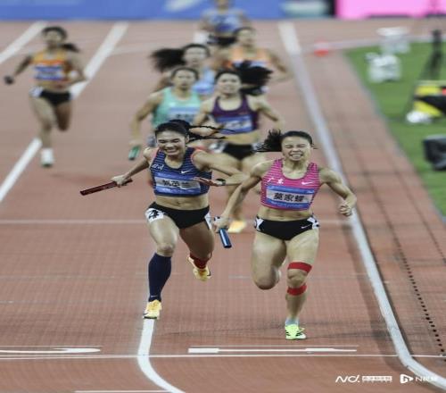 不過(guò),廣東隊(duì)發(fā)揮更出色,最后一棒莫家蝶力壓劉英蘭率先撞線,奪冠成績(jī)?yōu)?分17秒54,僅領(lǐng)先第二名四川隊(duì)0.12秒。