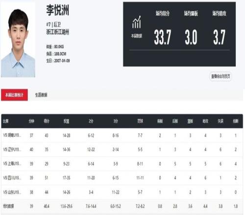 而李悅洲雖然沒有能夠幫助浙江隊打入決賽,但他的表現(xiàn)也非常亮眼:在已經(jīng)結(jié)束的五場小組賽和淘汰賽中,李悅洲能夠在場均出戰(zhàn)39分鐘時間里得到40.4分3.6個籃板4.4次助攻1.8次搶斷的數(shù)據(jù),三項命中率分別是45.9%、39.5%和87.8%。通過比賽來看,李悅洲的個人進(jìn)攻和硬解能力非常強(qiáng),在U18聯(lián)賽中可以說是獨(dú)一檔的存在,未來大有可期!