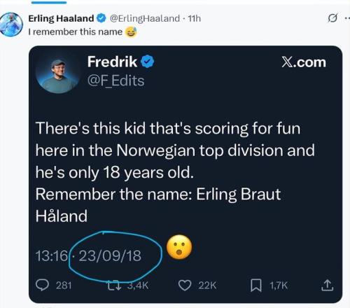 哈蘭德翻出2018年舊推文自嘲:“我記得這個(gè)名字!”